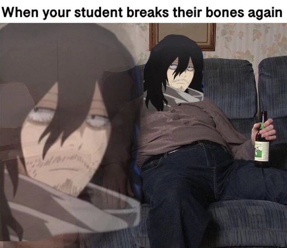25+ Mha Aizawa Meme. An amalgam of training, tournaments,. My hero academia popularity poll (japan) results: I don't remember if i've ever done descriptions, i don't think i did, so here's me wondering if i did . Is this meme plus ultra? Discover short videos related to my hero academia mr aizawa memes on tiktok. See more ideas about my hero academia memes, my hero academia episodes, anime funny. Katsuki my hero academia corn husk meme. Aizawa in front of students meme. Make my hero academia mr aizawa memes or upload your own images to make custom memes. My hero academia is shounen's darling;